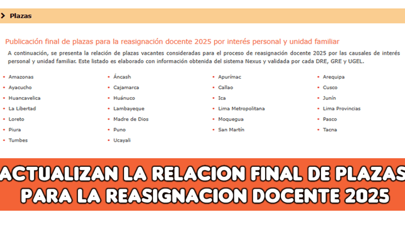 Cada DRE, GRE y UGEL deberá validar este listado de plazas hasta el lunes 21 de julio a fin de realizar la publicación final en la fecha establecida en el cronograma aprobado.