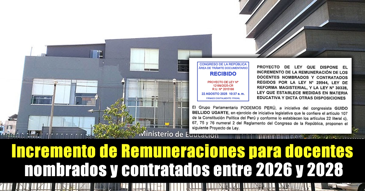 La presente Ley tiene por objeto incrementar progresivamente la remuneración de los docentes nombrados en el marco de la Ley N° 29944, Ley de Reforma Magisterial, así como de los docentes contratados en el marco de la Ley N° 30328, con la finalidad de reconocer la labor pedagógica con la sostenibilidad de su poder adquisitivo, garantizar la calidad del servicio educativo y dignificar la profesión docente en el país.