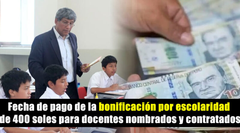 Fecha de pago de la bonificación por escolaridad de 400 soles para docentes nombrados y contratados