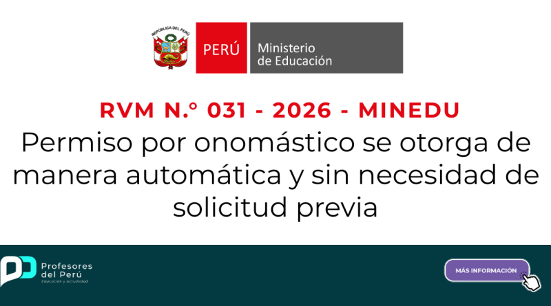 El profesor nombrado o contratado tiene derecho a gozar de descanso físico en el día de su onomástico. Solo en caso recaiga en un día no laborable, el descanso físico es gozado el primer día hábil siguiente, sin descuento, ni compensación horaria. La IE/UGEL/DRE debe tener actualizada la información sobre el onomástico de los profesores de su jurisdicción, toda vez que este permiso, no requiere comunicación.