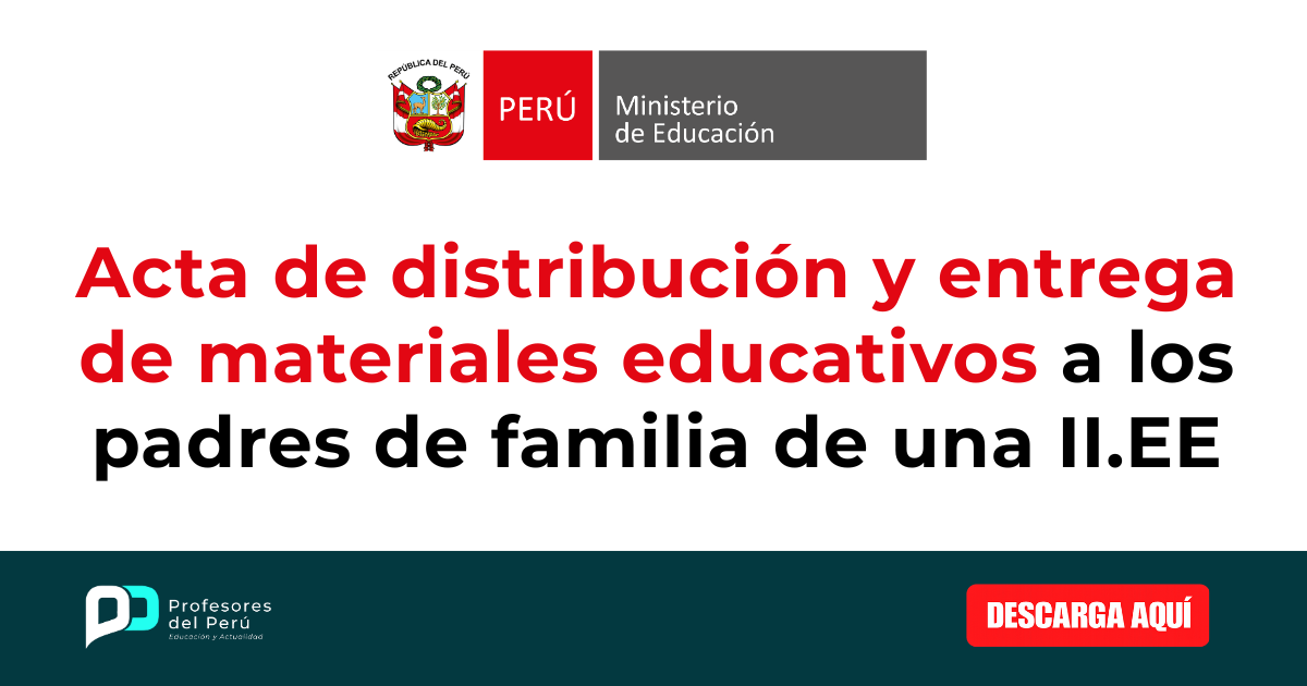En la localidad de ______________________, distrito de ______________________, provincia de ______________________, región ______________________, siendo las ______ horas del día ______ del mes de __________________ del año 2026, reunidos en las instalaciones de la Institución Educativa N.° ______, el Director(a), docentes responsables y los padres, madres o apoderados de familia, con la finalidad de realizar la entrega de los materiales educativos correspondientes al año escolar 2026.