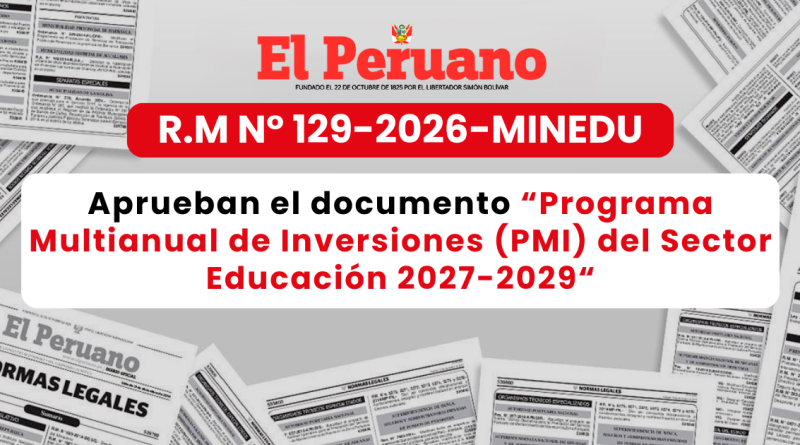 Aprueban el documento “Programa Multianual de Inversiones (PMI) del Sector Educación 2027-2029” – R.M N° 129-2026-MINEDU