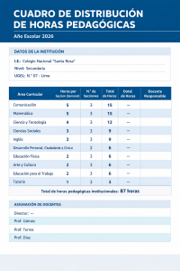 Resumen Institucional del Cuadro de Distribución de Horas Pedagógicas 2026 – Referencial