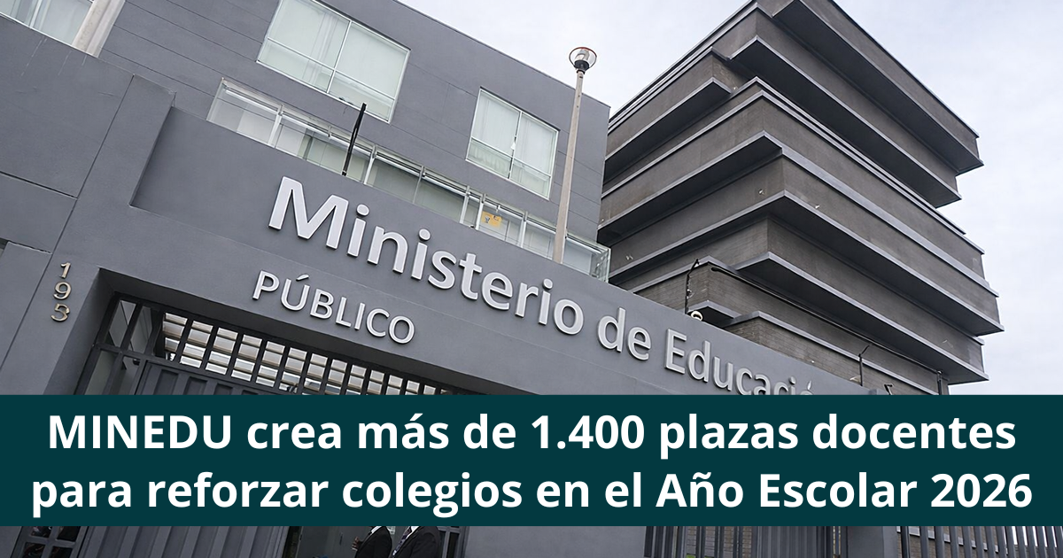 El Ministerio de Educación del Perú (Minedu) anunció la creación de nuevas plazas docentes y horas lectivas con el objetivo de reforzar la presencia de profesores en instituciones educativas del país como parte de las acciones del Buen Inicio del Año Escolar 2026.