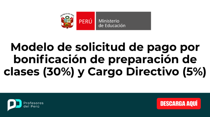 Modelo de solicitud de pago por bonificación de preparación de clases (30%) y Cargo Directivo (5%)