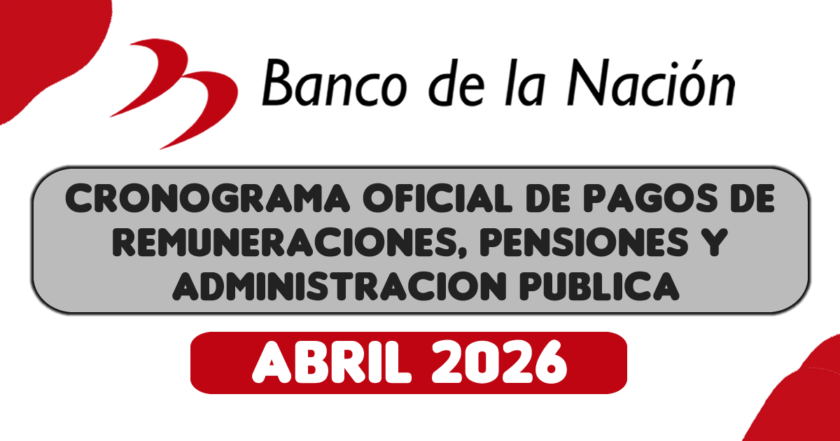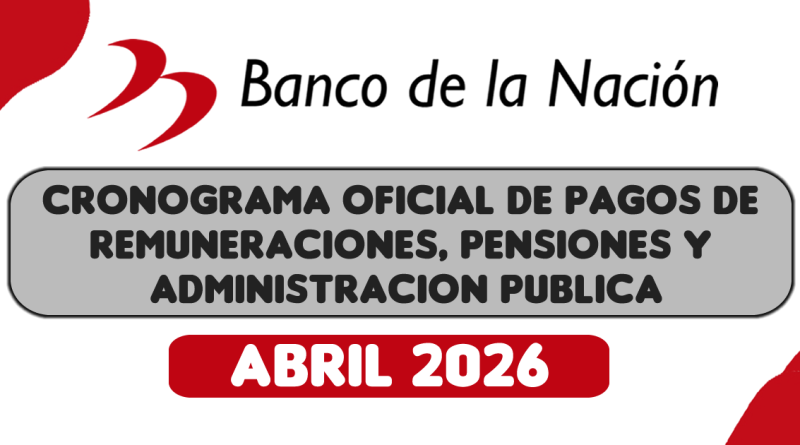 CRONOGRAMA DE PAGOS Banco de la Nación (ABRIL 2026) Pago de Remuneraciones – Pensiones – Administración Pública