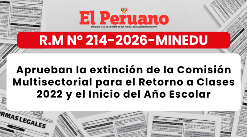 Aprueban la extinción de la Comisión Multisectorial para el Retorno a Clases 2022 y el Inicio del Año Escolar