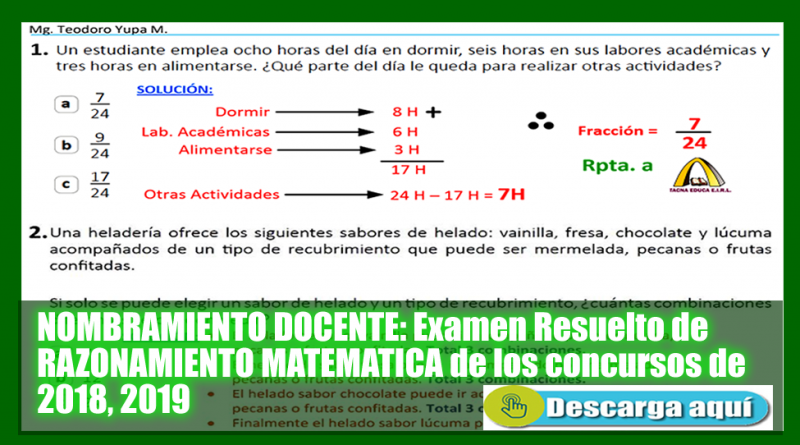 NOMBRAMIENTO DOCENTE: Examen Resulto de RAZONAMIENTO MATEMATICA de los concursos de 2018, 2019