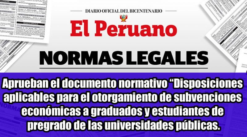 Aprueban el documento normativo “Disposiciones aplicables para el otorgamiento de subvenciones económicas a graduados y estudiantes de pregrado de las universidades públicas.