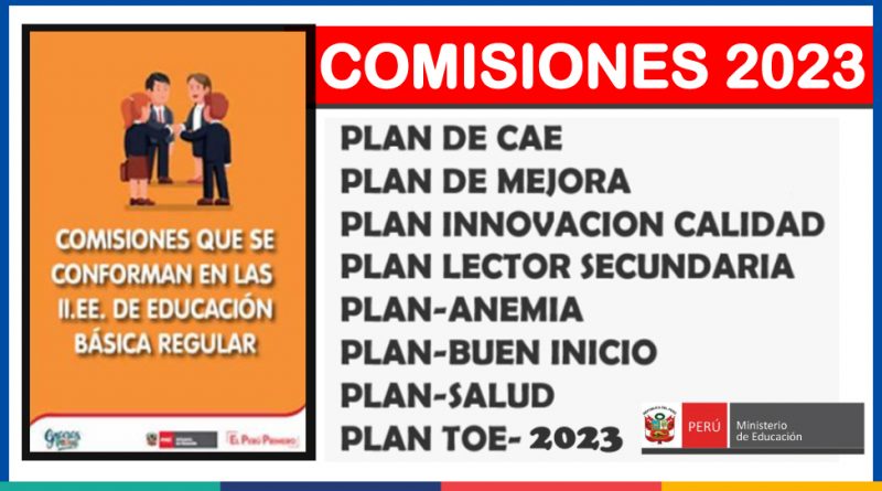 Apreciados maestros y amigos visitantes en general, en esta oportunidad tenemos el agrado de compartir con cada uno de ustedes, los formatos y guías para conformar las comisiones en las Instituciones Educativas a nivel nacional, para el año escolar 2023, esperando como siempre sea de gran ayuda para todos.