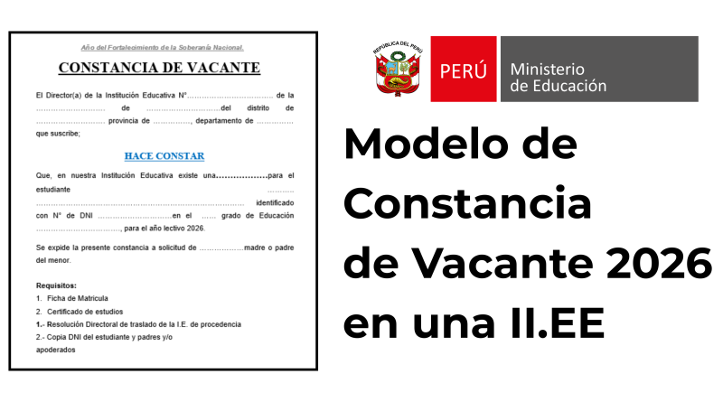 ActualidadCarrera DocenteDirectoresDocentes MIGUEL ANGEL 19 enero, 2026 Modelo de Constancia de Vacante 2026 en una II.EE Read More