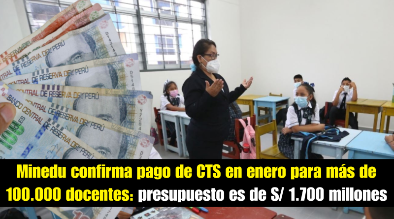 ActualidadCarrera Docente MIGUEL ANGEL 23 enero, 2026 Minedu confirma pago de CTS en enero para más de 100.000 docentes: presupuesto es de S/ 1.700 millones Read More