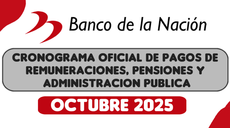 ActualidadCarrera Docente MIGUEL ANGEL 4 octubre, 2025 CRONOGRAMA DE PAGOS Banco de la Nación (OCTUBRE 2025) Pago de Remuneraciones – Pensiones – Administración Pública Read More