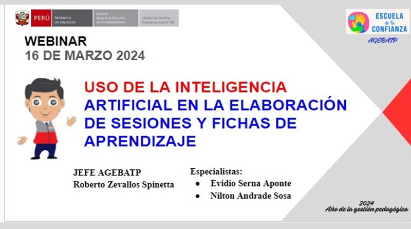 ActualidadCarrera DocenteDirectoresDocentes MIGUEL ANGEL 16 abril, 2024 MINEDU: PPT uso de la inteligencia artificial en la elaboración de sesiones y fichas de aprendizaje Read More