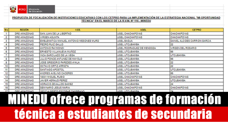 ActualidadCarrera DocenteDirectoresDocentes MIGUEL ANGEL 19 marzo, 2024 MINEDU ofrece programas de formación técnica a estudiantes de secundaria | INGRESA AQUI Read More