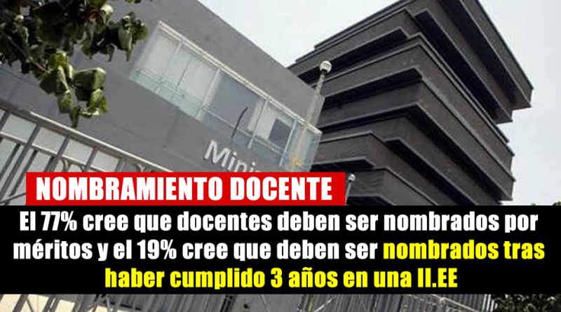 ActualidadCarrera Docente MIGUEL ANGEL 29 febrero, 2024 NOMBRAMIENTO DOCENTE: El 77% cree que docentes deben ser nombrados por méritos y el 19% cree que deben ser nombrados tras haber cumplido 3 años en una II.EE Read More