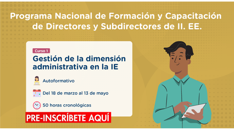 ActualidadCarrera DocenteDirectoresDocentesPerúEDUCAWebinar MIGUEL ANGEL 28 febrero, 2024 PeruEduca: Preinscríbete en los cursos del Programa Nacional de Formación y Capacitación de Directores y Subdirectores Read More