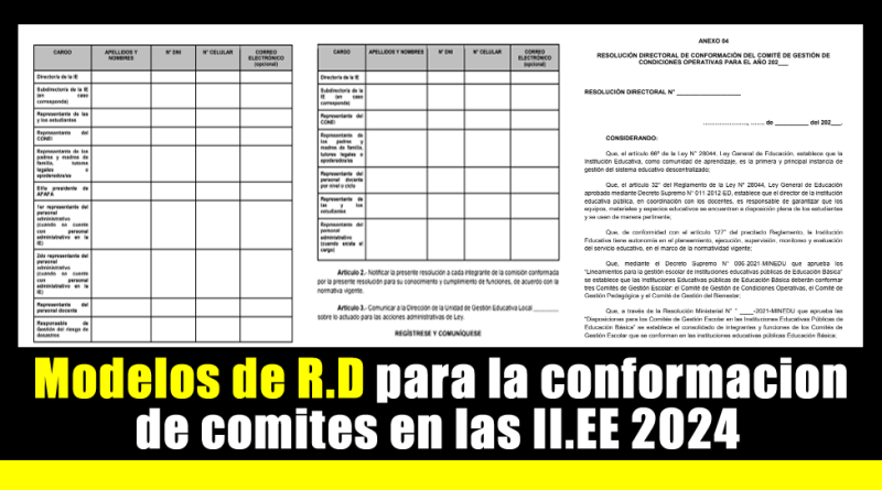ActualidadCarrera Docente MIGUEL ANGEL 23 febrero, 2024 Modelos de RD para la conformación de comités en las Instituciones Educativas 2024 Read More