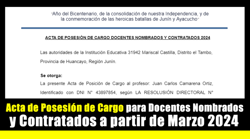 ActualidadCarrera Docente MIGUEL ANGEL 23 febrero, 2024 Acta de Posesión de Cargo para Docentes Nombrados y Contratados a partir de Marzo 2024 Read More
