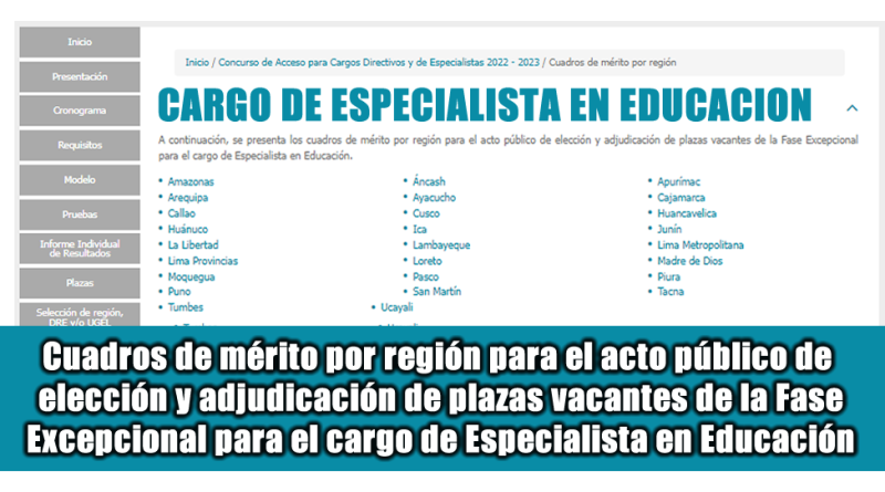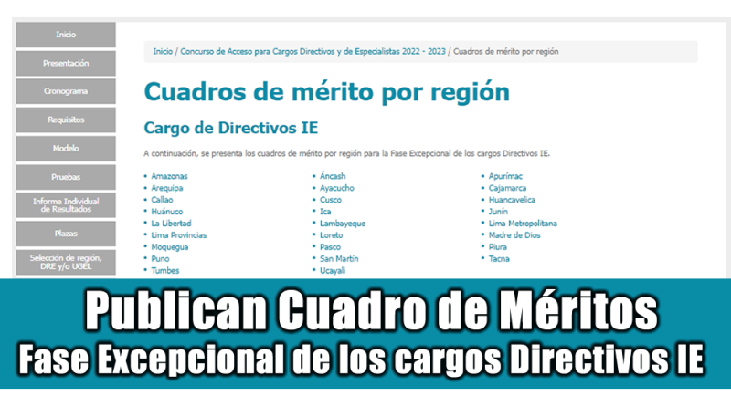 ActualidadCarrera DocenteDirectoresDocentesEvaluación de Desempeño MIGUEL ANGEL 24 febrero, 2024 Publican los Cuadros de mérito por región | Fase Excepcional de los cargos Directivos IE. Read More
