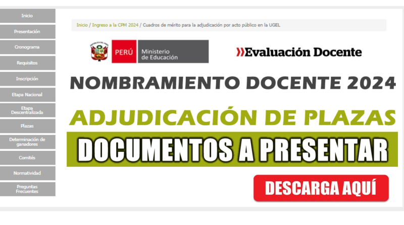 Acceso a CargosActualidadCarrera DocenteContrato DocenteCurrículo NacionalDocentesEvaluación de DesempeñoNombramiento DocenteNormativaPerúEDUCASecundaria PROFE VIRTUAL 3 enero, 2025 NOMBRAMIENTO DOCENTE 2024: protocolo para la adjudicación y causales de retiro por acto público etapa Ugel y DRE Read More