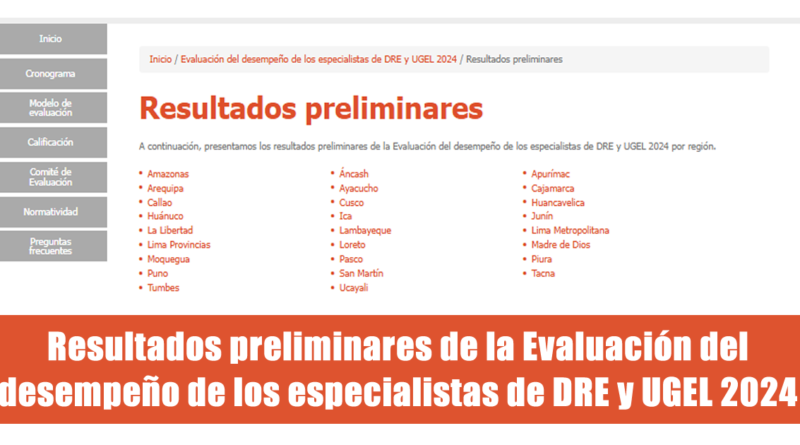 Acceso a CargosActualidadDirectoresDocentesEvaluación de Desempeño MIGUEL ANGEL 5 febrero, 2025 Resultados preliminares de la Evaluación del desempeño de los especialistas de DRE y UGEL 2024 Read More