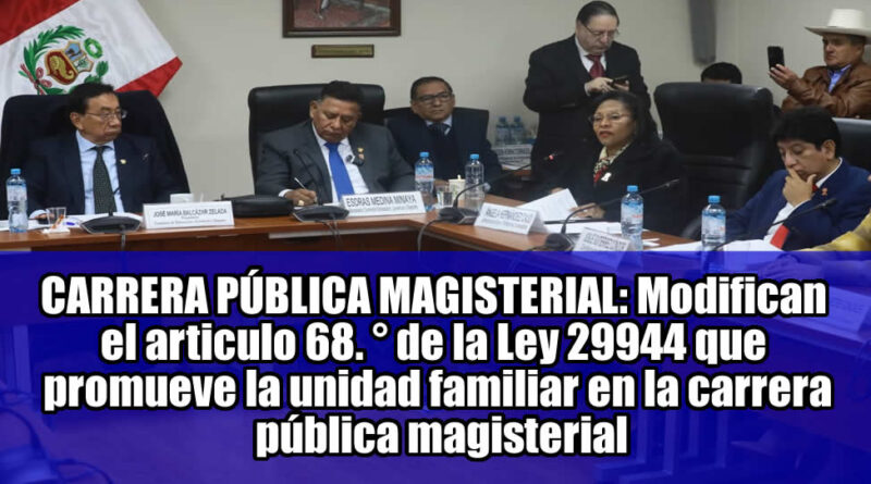 Acceso a CargosActualidadAscenso de EscalaCarrera DocenteContrato DocenteCurrículo NacionalDirectoresDocentesEvaluación de DesempeñoNombramiento DocenteNormativaPlanificación CurricularTecnologías de Información y Comunicación (TIC) PROFE VIRTUAL 23 julio, 2024 CARRERA PÚBLICA MAGISTERIAL: Modifican el articulo 68. ° de la Ley 29944 que promueve la unidad familiar en la carrera pública magisterial. [Aquí mas información] Read More