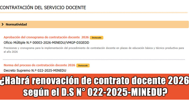 ActualidadCarrera DocenteContrato DocenteDirectoresDocentes MIGUEL ANGEL 7 enero, 2026 ¿Habrá renovación de contrato docente 2026 según el D.S N° 022-2025-MINEDU? Read More