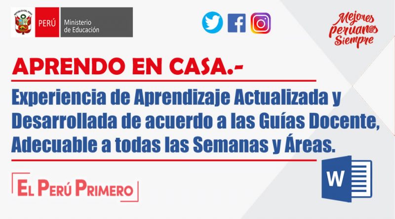 ActualidadAprendo en casaCarrera DocenteDirectoresDocentesPlanificación CurricularPrimariaRecursosSecundaria PROFE VIRTUAL 21 agosto, 2020 Experiencia de Aprendizaje Actualizada y Desarrollada de acuerdo a las Guías Docente – Adecuable a todas las Semanas y Áreas. Read More