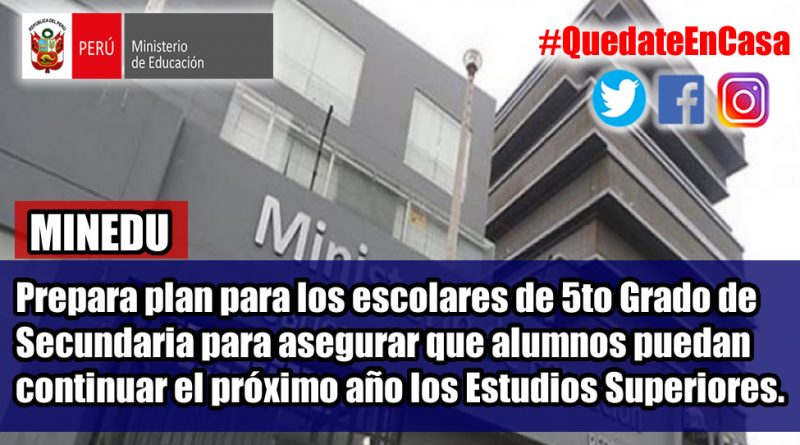 ActualidadCarrera Docente PROFE VIRTUAL 16 agosto, 2020 MINEDU – Prepara plan para los escolares de 5to Grado de Secundaria para asegurar que alumnos puedan continuar el próximo año los Estudios Superiores. Read More