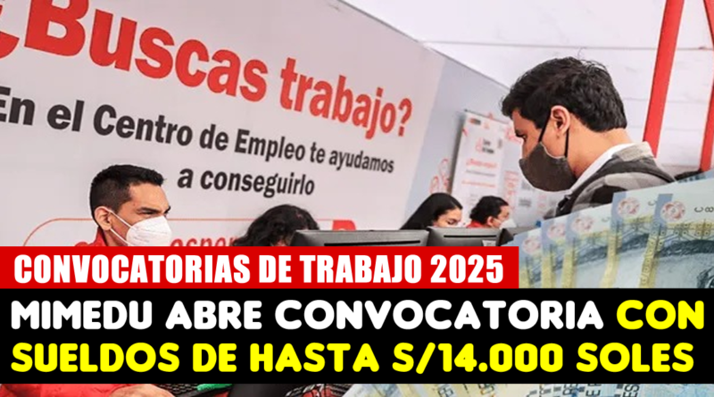ActualidadCarrera DocenteDirectoresDocentesSIAGIE MIGUEL ANGEL 27 enero, 2025 CONVOCATORIAS DE TRABAJO 2025: MIMEDU abre convocatoria con sueldos de hasta S/14.000 soles Read More