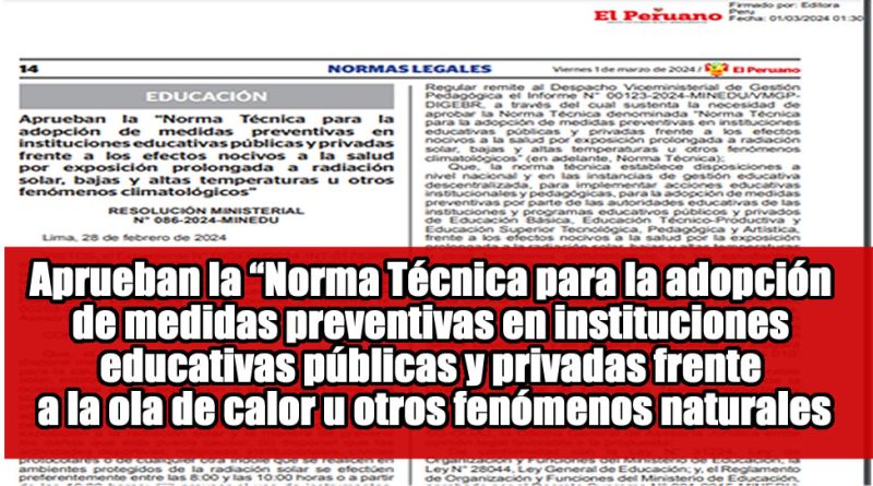 ActualidadCarrera DocenteContrato DocenteCurrículo NacionalDirectoresDocumentos InstitucionalesEstudiantesInicialMonitoreo y AcompañamientoNormativaPlanificaciónPlanificación CurricularPrimariaRecursosSecundariaSIAGIEWebinar PROFE VIRTUAL 1 marzo, 2024 Aprueban la “Norma Técnica para la adopción de medidas preventivas en instituciones educativas públicas y privadas frente a la ola de calor u otros fenómenos naturales Read More