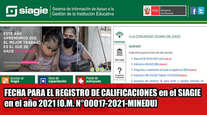 ActualidadAprendo en casaDirectoresDocentesNormativaPerúEDUCAPlanificaciónRepositorio MINEDUTecnologías de Información y Comunicación (TIC) PROFE VIRTUAL 8 agosto, 2021 FECHA DE REGISTRO DE CALIFICACIONES en el SIAGIE en el año 2021 [O.M. N°00017-2021-MINEDU] Read More