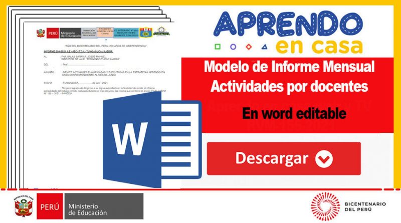 Read MoreMODELO DE INFORME MENSUAL INFORME N°04 – 2021 – I.E. “Leoncio Prado”- CPL – JUNIO 2021AL : Lic. Carlos Alberto