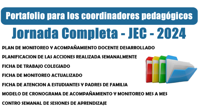 ActualidadCarrera Docente MIGUEL ANGEL 5 junio, 2024 Portafolio para los coordinadores pedagógicos en las IE. de Jornada Completa – JEC – 2024 Read More